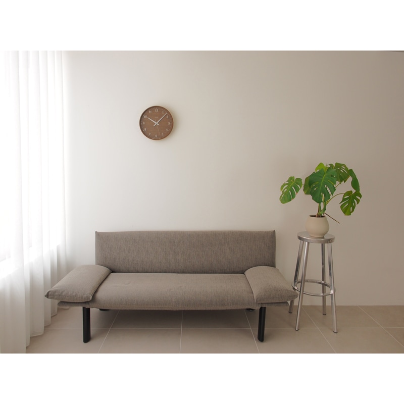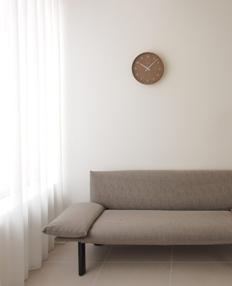 今回、新色ミドルブラウンも加わり、さまざまなインテリアテイストに馴染みます。上質な天然木突き板を文字盤に採用し、ガラスに印刷を施したシルバー指標はゆらめく軽やかさがアクセントに。繊細さと素材感を兼ね備えた電波時計です。