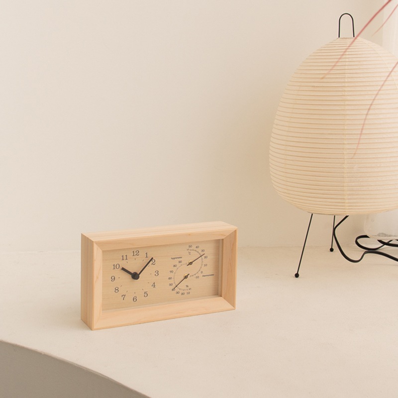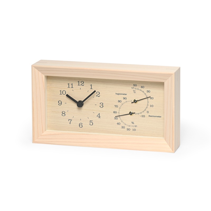 また湿度計は、空気の水分の度合いを示す相対湿度を、百分率(%)でわかりやすく針式で表示し、独自の技術によりひと目で度数を確認できます。それぞれ国内工場にて厳しい管理のもと、ひとつひとつ組み立てられています。