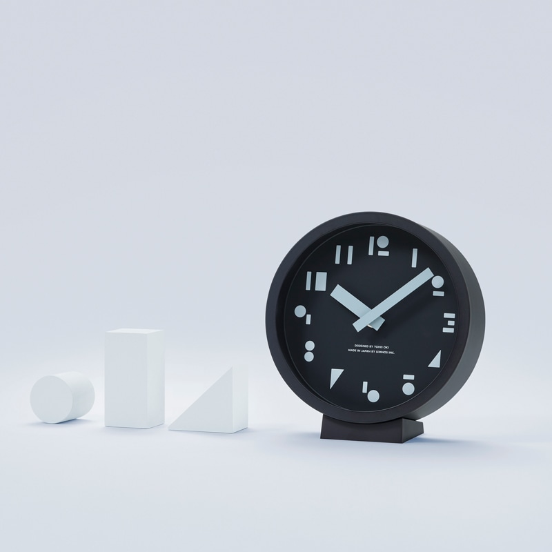 幾何学的な図形のあつまりを組み合わせていくと、数字に見えてきます。時刻を示すカタチは、リズミカルに配置され、 あたらしいデザインクロックになりました。深みあるブラックに、アイスクリームのようなポップな配色の3色を加えた4色展開です。付属スタンドを外すと小ぶりなサイズの壁掛け時計としてインテリアのアクセントにもお使いください。